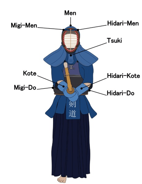 À l’époque des samouraïs, les guerriers étaient entraînés à viser les points faibles de l’armure. Dans le kendo moderne, les cibles sont sur l’armure, pour des raisons évidentes de sécurité.